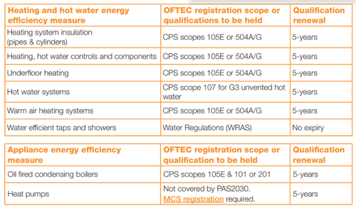 To add PAS 2030 certification, your business must employ a technician with one of the following OFTEC competent person scheme registrations and/or qualifications: